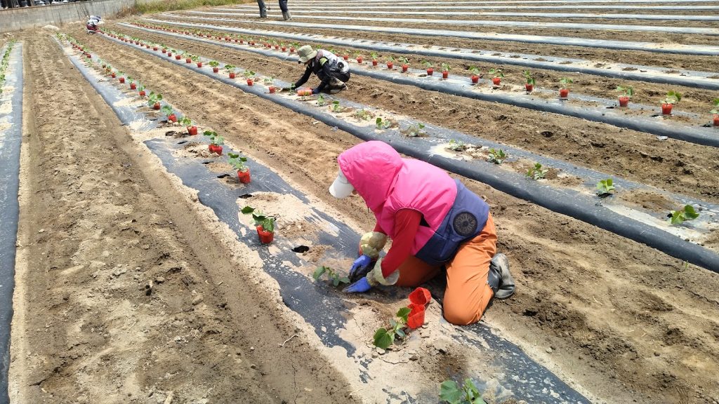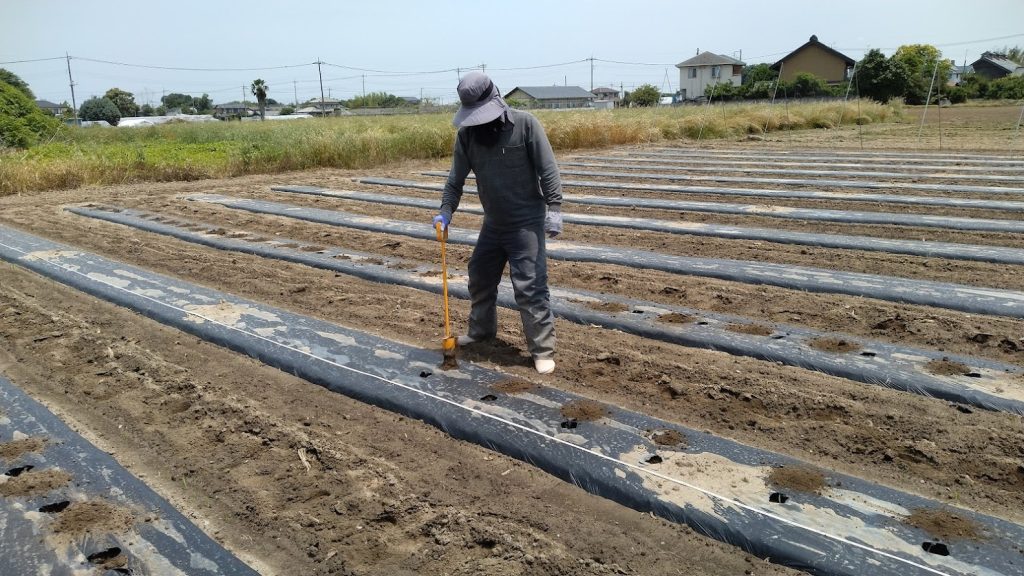 露地きゅうりの定植風景です。